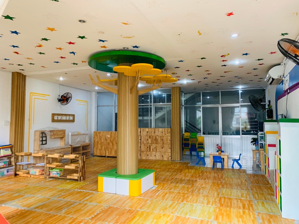 Không gian thoáng rộng, sạch sẽ nằm trên trục đường chính rộng thuận lợi cho việc đưa đón trẻ và không sợ tắt đường vào giờ tan tầm.